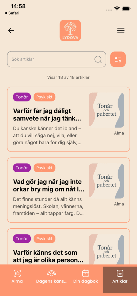 Från pubertet till klimakterium, från fertilitet till tiden efter förlossning – Alma vägleder dig genom texter som inte bara informerar, utan berör på djupet.